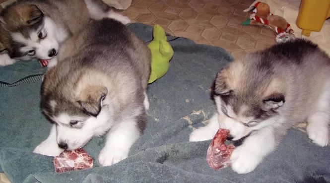You can feed a small husky with natural food or ready-made meals already from two months.