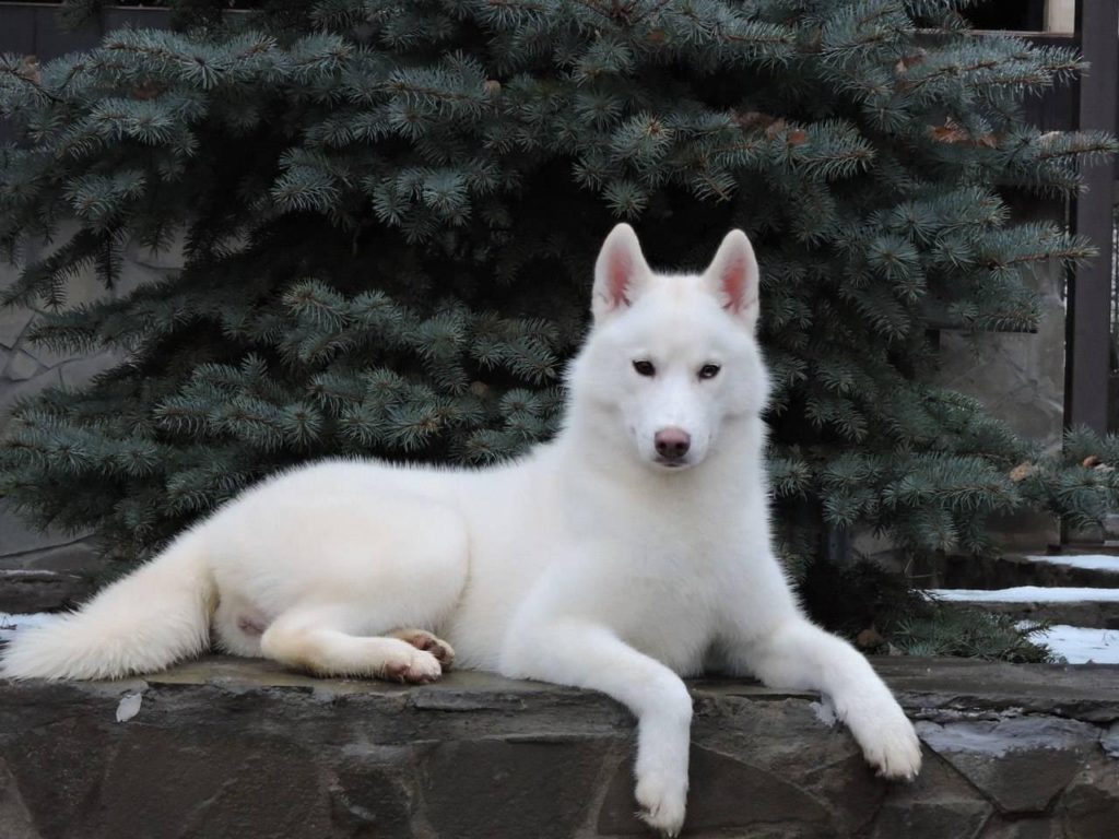 Japanese huskies can have a variety of colors, but most often tiger or red and white individuals are found.