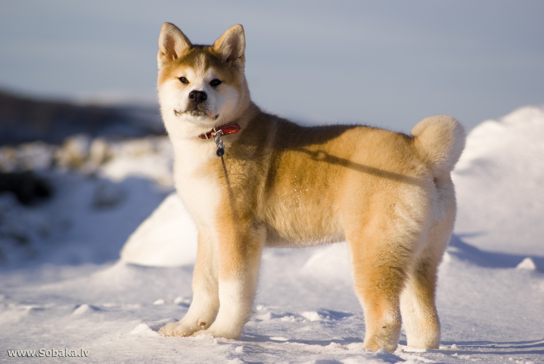 Japanese Huskies are called Akita Inu. These are long-haired animals with a characteristic large head of a triangular structure. The eyes of the Akita are small, and the ears are erect, like the tail twisted into a ring. The average weight of these furry friends is 45 kg, and height - 70 cm.