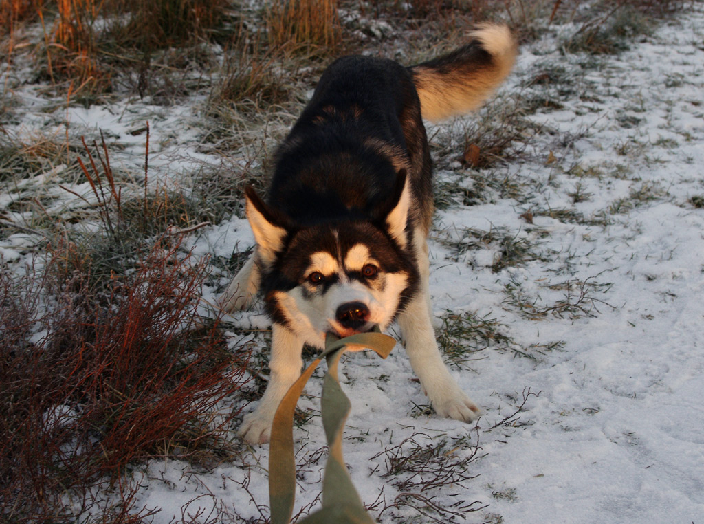 The hardest thing for the Huskies is to master the command “close by”. Despite this, it can not be neglected. If the dog does not learn the team, then during walks he will drag the master behind him, not reacting to all his protests and indignations. I must say, Huskies almost always need something to drag. Pulling the leash is their standard habit, put on the gene level. The owner can take such behaviors under personal control. It will take a lot of time, effort and patience. It will not be superfluous to learn such commands as “Left!”, “Right!”, “Stop!”, “Shake Off!”, “Back!”.