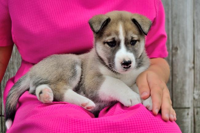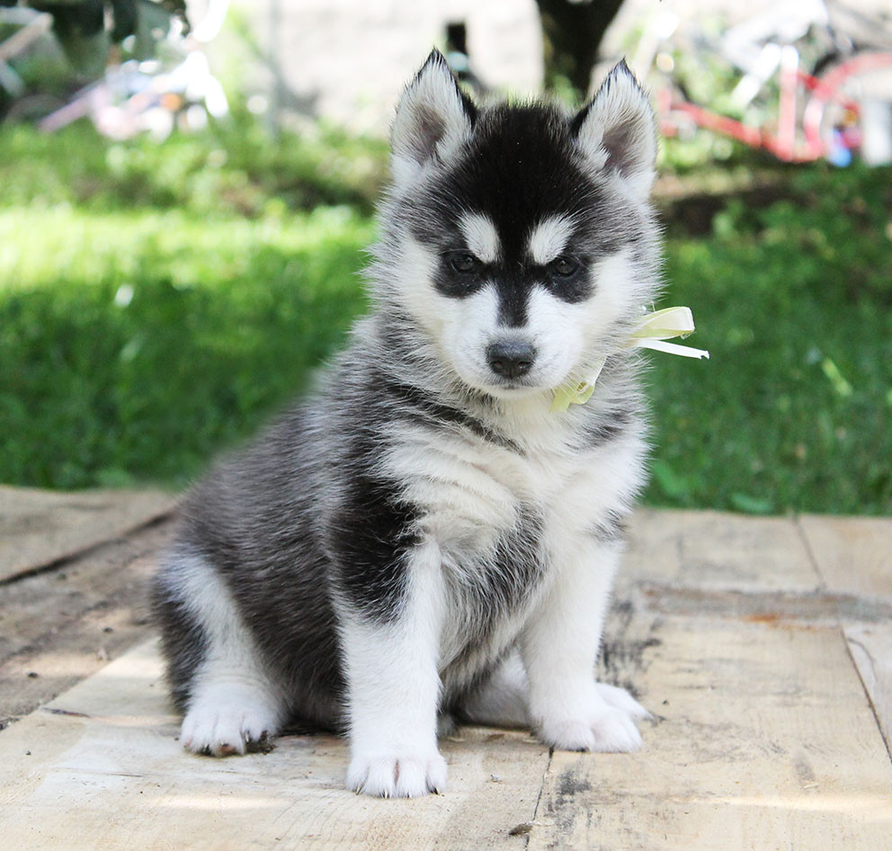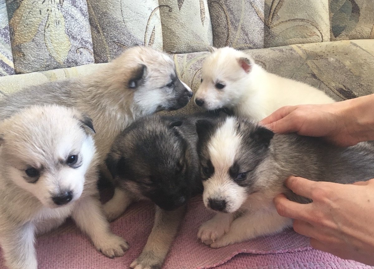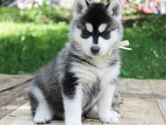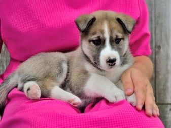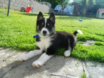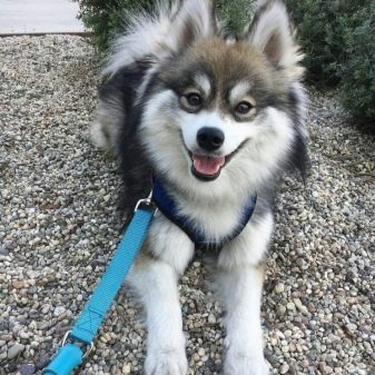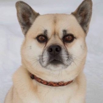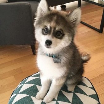Externally, the animal will resemble a mini-husky, the dog will have short limbs, but an elongated body. The color of the dogs is mostly black and white, the eye color of the pet will inherit from the Siberian parent. The animal, up to its very old age, retains its friendly and playful attitude towards the person, is strongly attached to the breeder, and also stands out with a well-developed intellect.