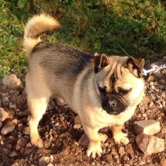 The dog is not as common, according to the external characteristics of the animal, heredity from the northern ancestor is not so pronounced. The structure of the body is similar to the pug, also from the petite four-legged pets, the half-breed will inherit a good-natured character.