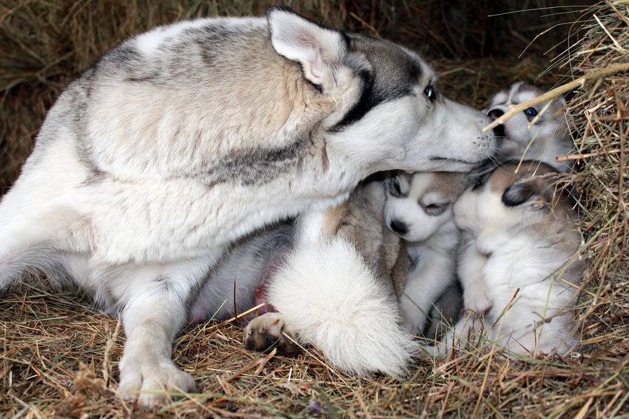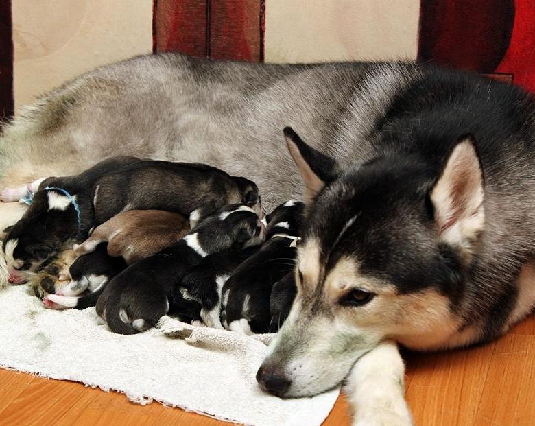 After the birth of puppies, it is better to take a vacation, they will need a lot of your attention. It is especially important to do so if the bitch gives birth for the first time. If you plan to breed Huskies, then notice all the slightest changes in the behavior of the mother, this is important.