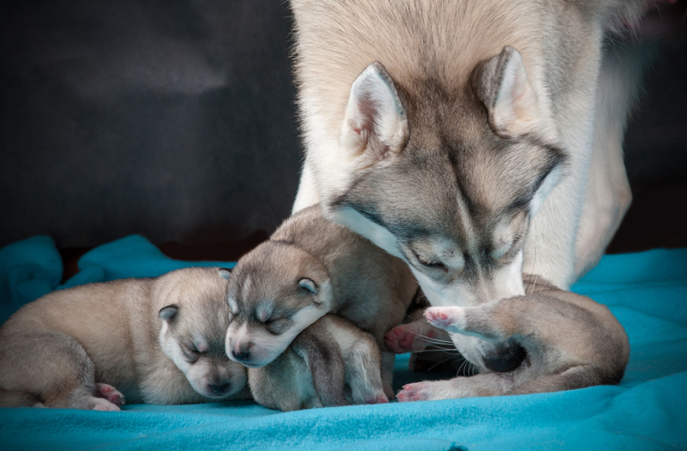 On the care of newborn husky puppies, see the following video.