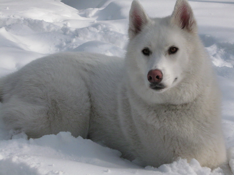 - White. A pure snow white shade of coat for husky dogs is considered to be atypical. It is quite rare. It is characterized by the complete absence of other color inclusions, yellowness. The most common color is found in workers - driving breed lines in Siberia. But in his homeland the breeders do not appreciate him too much - the dog is hardly noticeable in the snow, which makes it difficult for the driver to work with it.