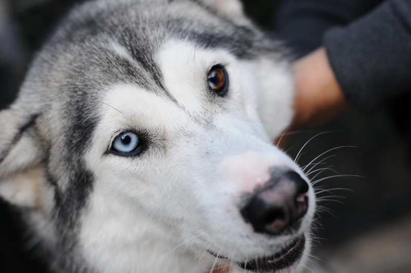 Pigmentation of the skin, not covered with hair, white Husky contrasting, say beige, brown, deep black color.