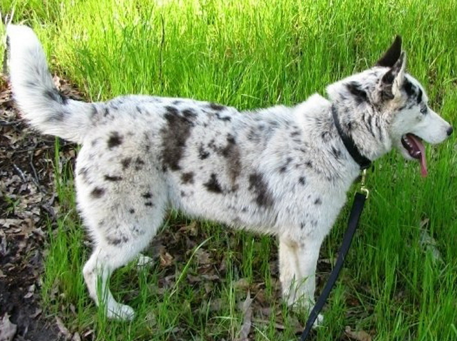 - Marble. The rare variegated or marble color of wool in Huskies is usually presented as a basic white background, on the surface of which there are scattered black, dark and light gray inclusions. The spots have a regular rounded shape, are located on the surface of the hips, tail, on the back and head.