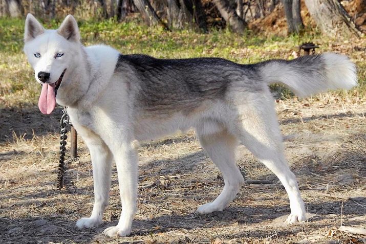 - Silver white. Gray husky with a silver-colored undercoat look especially decorative. Unlike the snow-white fellows, they already have a pronounced mask on the face, there is an arrow on the frontal furrow. For representatives of the silver-white color is characterized by the presence of a contrast, dark outline of the eyes.