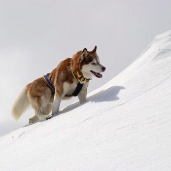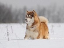 Purely red Husky, without inclusions of white, it is impossible to meet, the coat must be diluted with light tones. The color of the undercoat of such dogs may be white, gray and cream. Often on the face you can see the figure in the form of a mask, and at the base of the nose - a double line. The most common eye color is blue, but there are brown. Heterochromia can be a feature of this breed, which is not a defect.