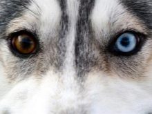Another legend says that the dog was able to look into eternity itself. Looking at the huge hummocks and blue ice smooth surface, intently gazing at the ocean, the Husky comprehended the mystery of life and death. His eyes acquired that shade as the color of the water element.