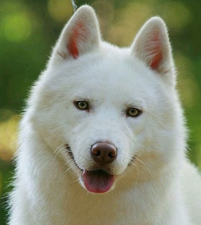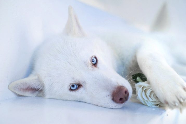 Another type of beautiful blue-eyed husky is white-haired animals. On the surface of their long and thick wool cover you will not find a single speck of color. Such dogs are extremely rare, so they are very highly valued among breeders.
