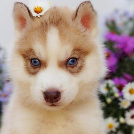 - A cute husky with a tan and a beautiful “accessory” in the form of a daisy has every chance of success.