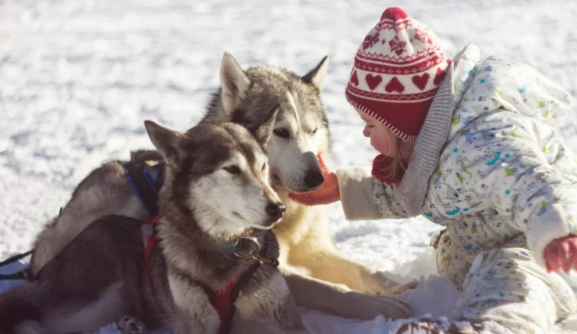 Friendly by nature, husky are perfect for families with small children. They are very reverent and patient about the manifestations of babies and can even take them under their care.