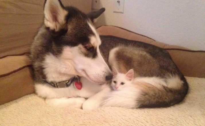 These dogs are gregarious creatures, so they will be happy with a company of animals, they will be able to make friends with dogs of completely different breeds and get along well with cats, they can take kittens under their care. Despite the lack of guard qualities Huskies can be jealous of those who are considered part of their pack and protect them.