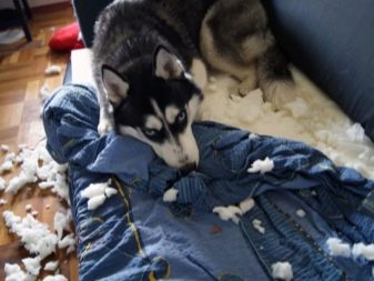 - Such a pet is very curious, and its curiosity can negatively affect the condition of household utensils and furniture. Huskies can gut pillows, sometimes spoil upholstery or other textile accessories.If the dog wants to get to any object, then, most likely, it will manage to do it, removing all obstacles in its path. Without a proper approach to the education of Huskies can become real destroyers.
