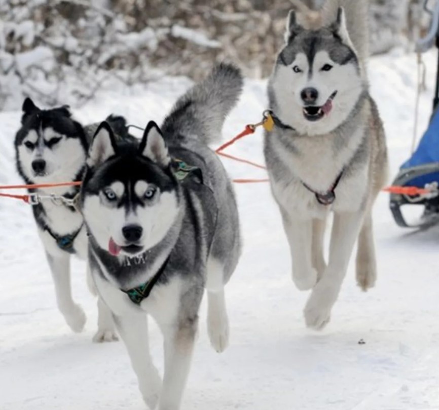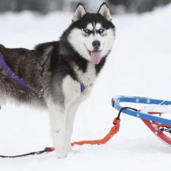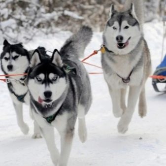 Huskies have a certain external resemblance to wolves, since they inherited their traits. Initially, this breed was used only for driving purposes. The hardy and mobile huskies could carry heavy loads and also cover considerable distances, transporting a person in a team.