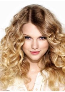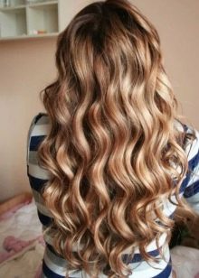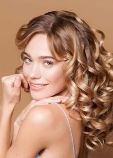 - Curls that will fall on the shoulders, making the hair volumetric and spectacular, are created with the help of large curlers with a diameter of 3 cm.