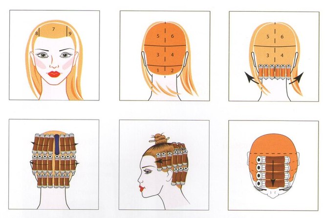 Each selected part of the hair is divided into strands, which are alternately wound on a curler. It is necessary to move from the central part to the side zones, you can also begin work from the back of the head and move towards the crown. Stretch curls are not worth it. In the case of long hair, you can apply a small amount of the composition before winding, in order not to worry about the quality of impregnation of curls.