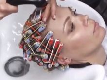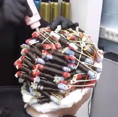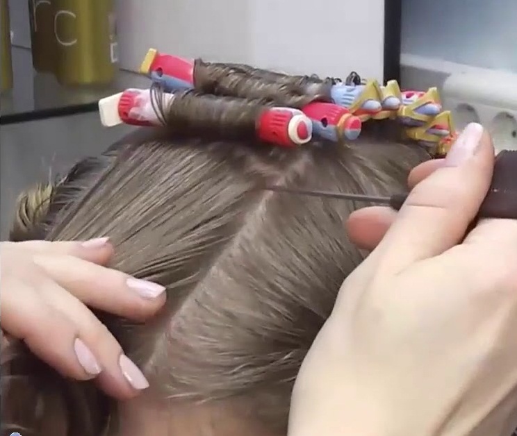 - Curling. Next, it is necessary to divide the hair into individual strands and twist each into a bobbin, then apply the active solution and leave for a quarter of an hour. During this time, the synthetic protein penetrates into the hair shaft, changing its structure, and replaces part of the natural protein bonds. Under the influence of the active components, the curl changes its shape and is able to hold a new shape for quite a long time.