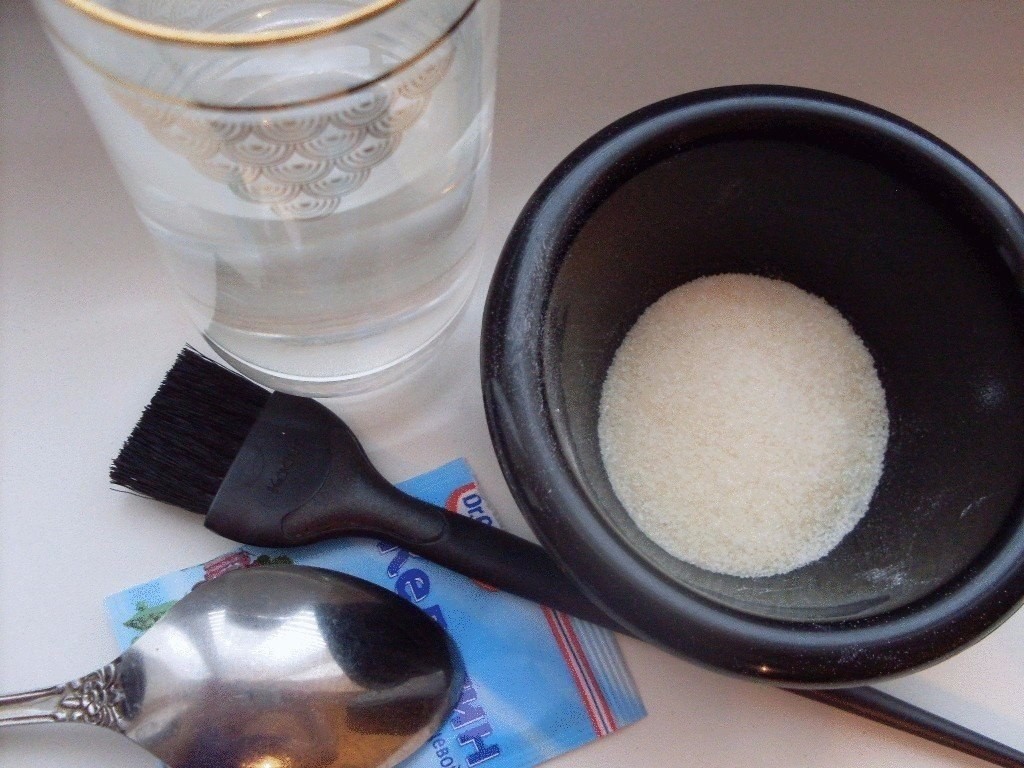 - Mask of oil and gelatin is prepared as follows: 2 tbsp. l shampoo mixed with 1 tbsp. l gelatin and three drops of jojoba oil. After swelling, the composition is applied to clean, slightly moistened curls, and leave for 50 minutes. Then the mask is washed off with water, and the hair is dried with a hairdryer.