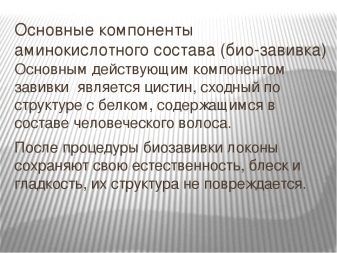 - Amino acid - suitable for thin and weakened curls, during the manipulation of curls, not only curls, but also feed on all sorts of amino acids and proteins.