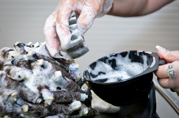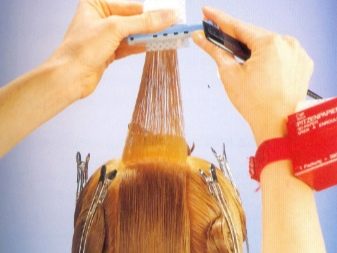 The composition is diluted in the required concentration and spread on curlers with a sponge or a special applicator. Work should be extremely careful to prevent the formation of splashes. Usually, treatment begins from the occipital part, moving to the forehead, and then pass through the temporal areas.