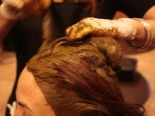 When applying the cream on the basal areas, it is important to take not just a nourishing cream, which is quickly absorbed into the skin along with the dye, but the fattest one, which is applied in a thick layer, without sparing it. It protects the skin from the appearance of blemishes. Washing the hair, this cream will also be washed off. It is important to treat their necks and ears, as these places are most susceptible to contamination during work.