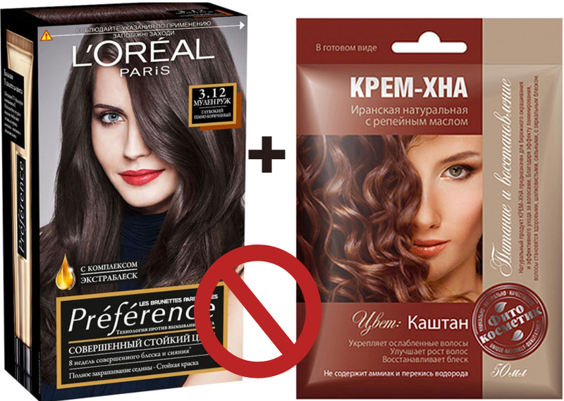As a result, the hair color will be spoiled and it is impossible to clean it all at home, you will have to contact specialists. The same unpredictable effect awaits those who are trying to mix henna and ordinary hair dye on their own at home. You can not do this.