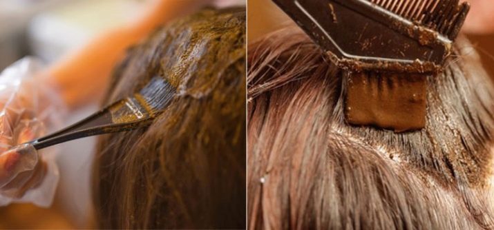 Hands must be protected with gloves, but the skin along the hairline should be treated with cream or oil, so that accidentally caught paint does not paint the skin.