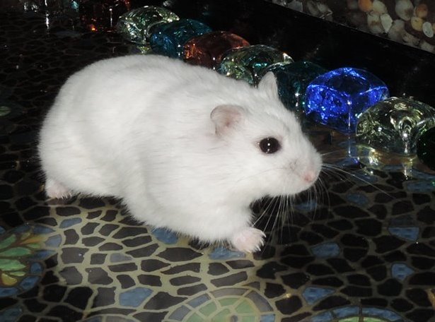 Albinos among the Dzungar hamsters are rare. In the wild, the Dzungar hamster changes its coat to a white one, which allows it to mask in the snow and hide from predators.