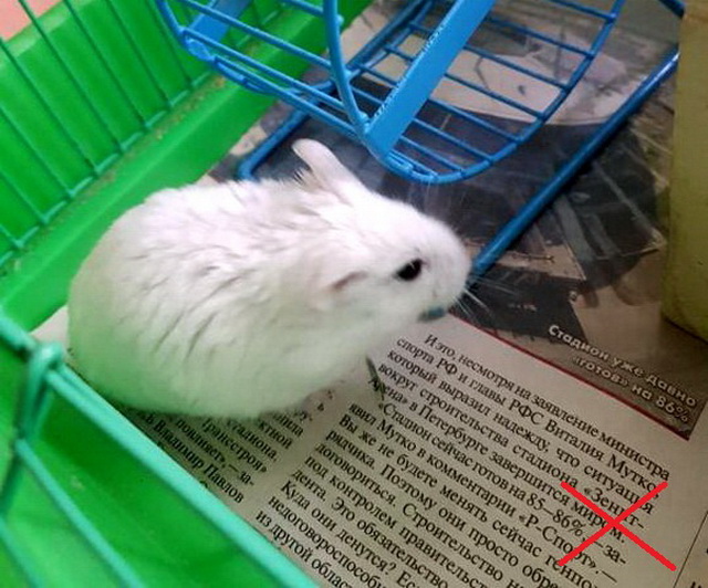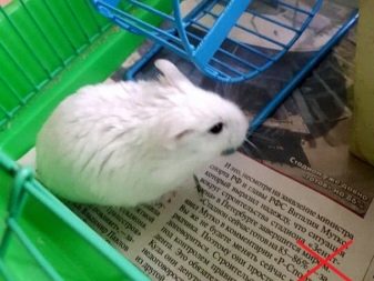 Various fibrous materials for bedding are contraindicated - most often it is cotton wool and fabrics. They can get into the cheekbones of an albino, start rotting and cause inflammation. The threads are often wrapped around the paws of hamsters - this can result in loss of limbs.