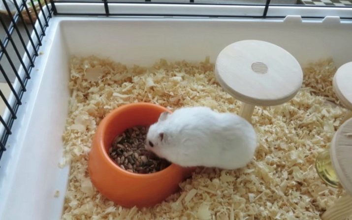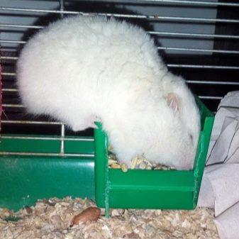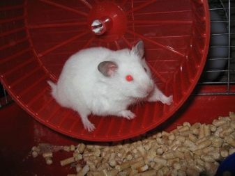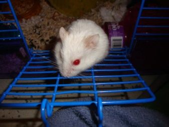 These include all kinds of running wheels, ladders and swings. Albinos lead an active life at night. The fewer opportunities for the owner to walk a hamster, the more conditions for the release of energy must be provided in the cage. At the same time you need to follow so that the legs of an albino are not stuck between the twigs or in the wheel.