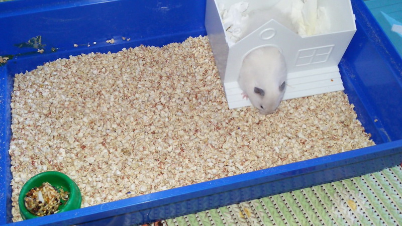 At the same time, white hamsters with red eyes may be allergic to wood dust, so the option with clean and soft wipes without dyes can be the way out. Hay is good for bedding, which some hamsters even make with their delicacy.