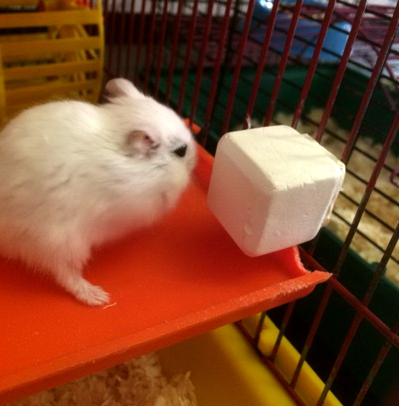 Albinos need solid food to grind down teeth that grow throughout life. You can buy special mineral stones. If the owner is confident in his skills, he can independently trim the claws of hamsters. They are also devoid of pigments and have a light color, so the procedure should be carried out with extreme caution.