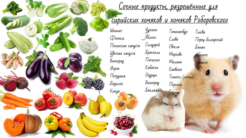 Try to limit the consumption of fruits with high sugar content: apricots, sweet melons, pears, grapes and ripe bananas - they can be offered only occasionally in insignificant amounts. The fact is that all hamsters are predisposed to the development of diabetes, because the abuse of such products will simply kill the animals.