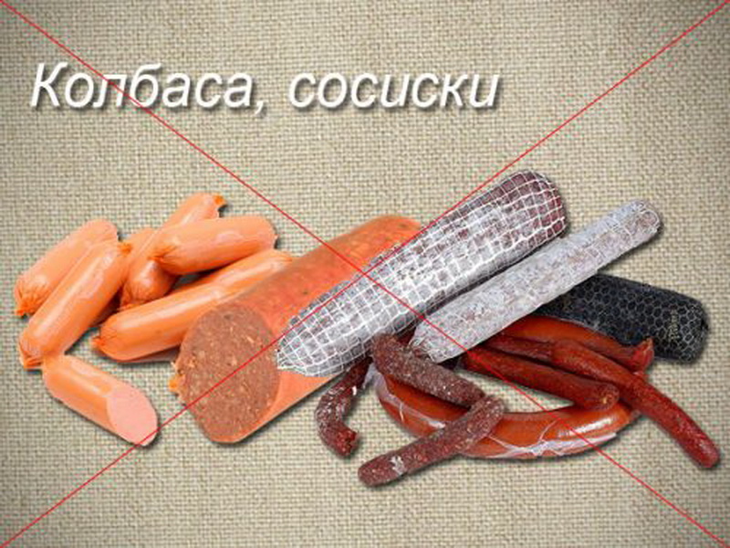 The menu should be absent products such as butter, heavy cream, homemade sour cream, yogurt, kefir and milk.