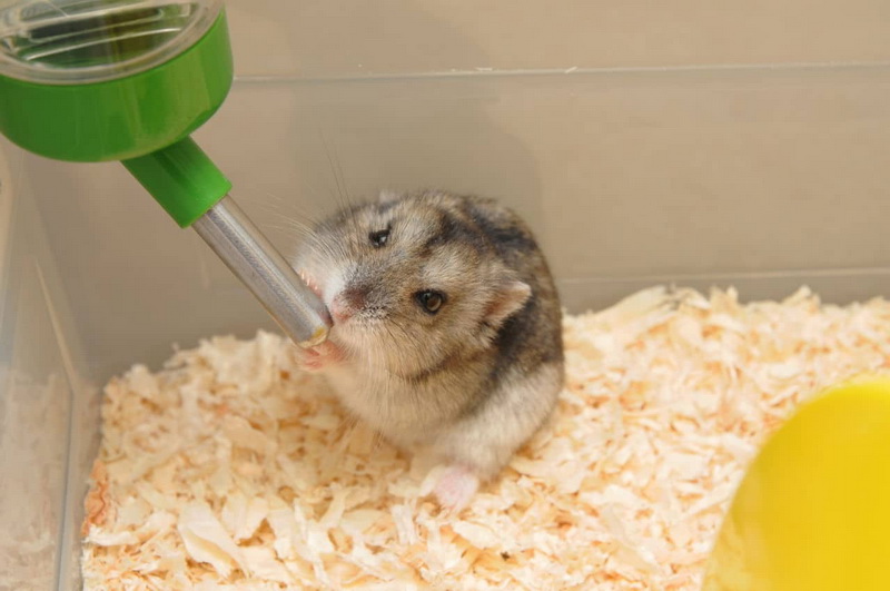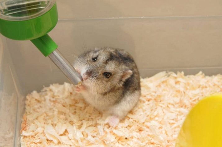 It is desirable that the fluid in the cell be in a special drinker fixed on the bars of the cell. Water is better to use bottled or filtered, Do not forget to change it daily, even if the hamster drank very little.