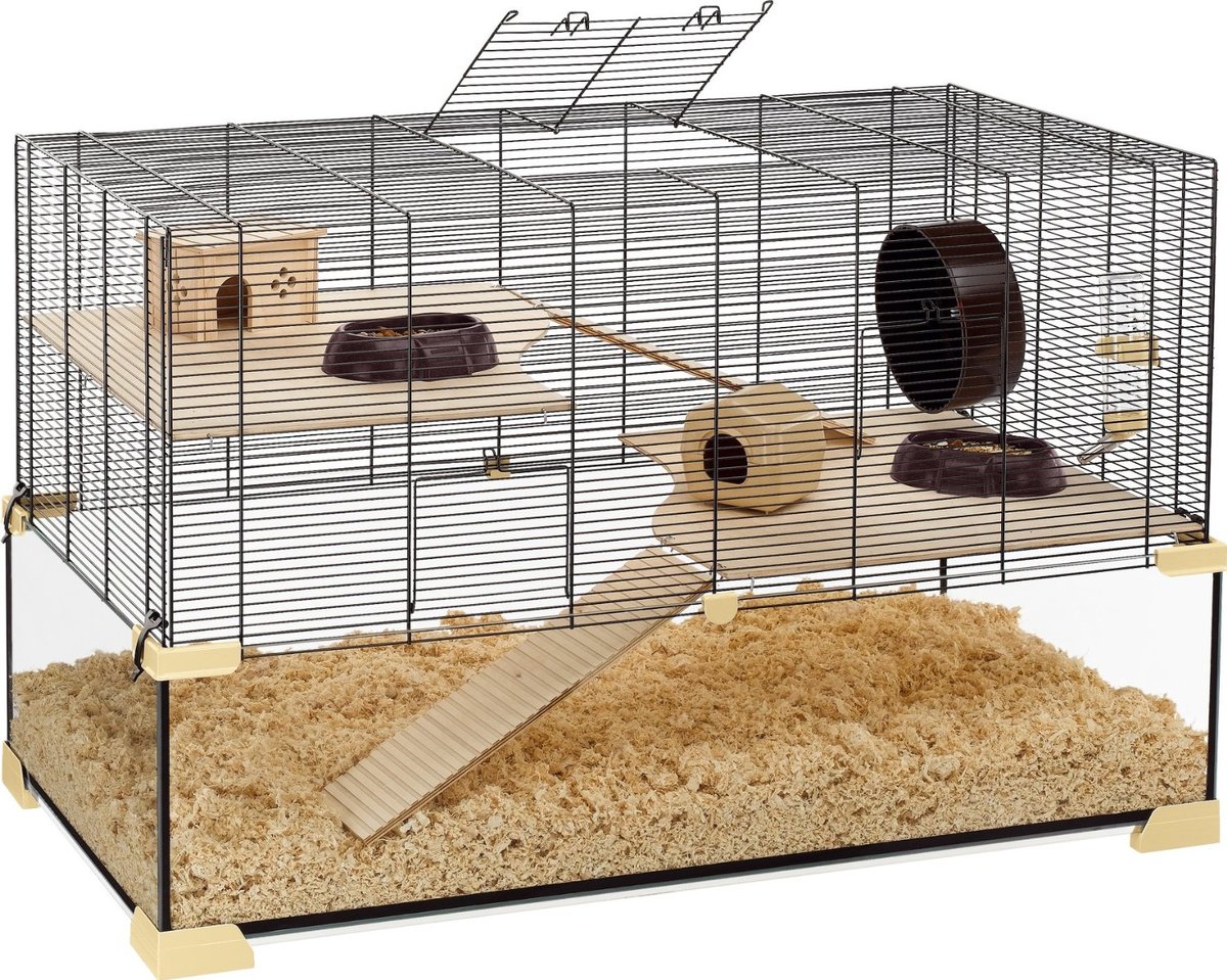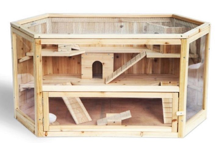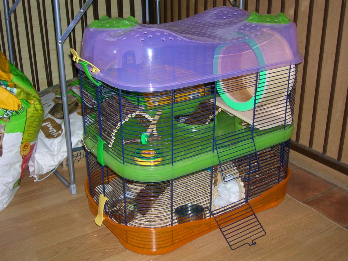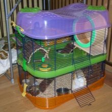 - Three-storey and two-story cell. Such dwellings have large dimensions. The height between the levels in them should not be too high. On the upper floors, the animal rests, and the lower ones are used for vigorous activity and games. Multi-storey cells can have solid platforms for their entire length or to the middle.In horizontal solid platforms, there is always a hole for descending the ladder. Often these cells are equipped with pipe-tunnels and labyrinths.