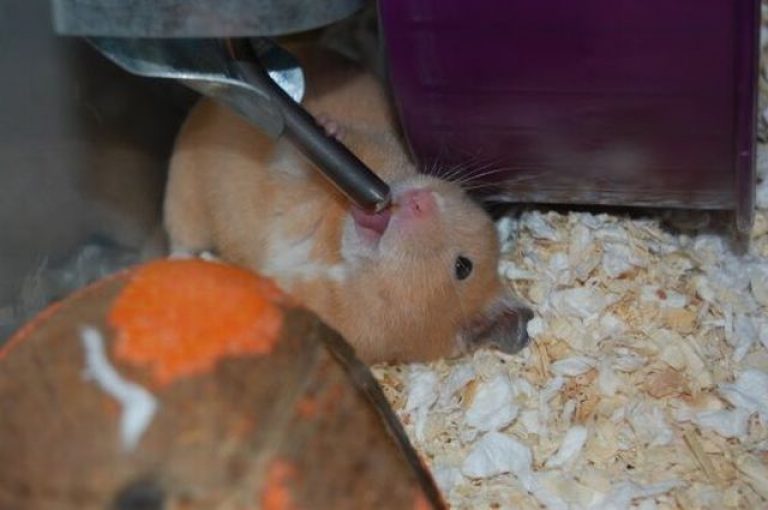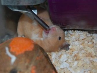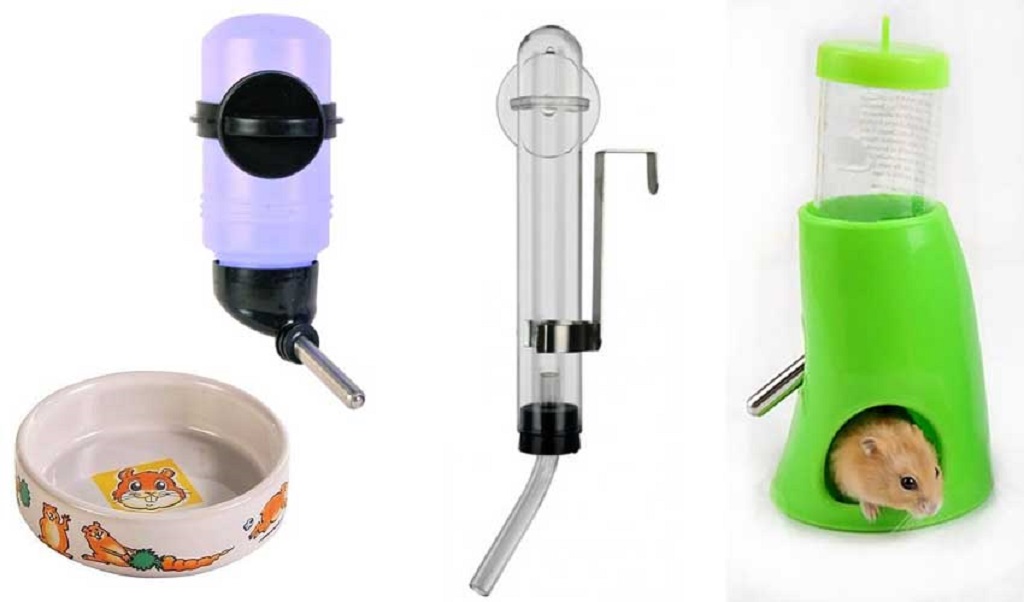 Water is not recommended to be poured into a usual saucer or bowl: the hamster can turn them over and the litter will be constantly wet. It is better to use a special drinker. There are several types of them: drinking bowl with a pocket and a ball, vacuum and nipple. They are attached to the cage outside and will not occupy space inside.