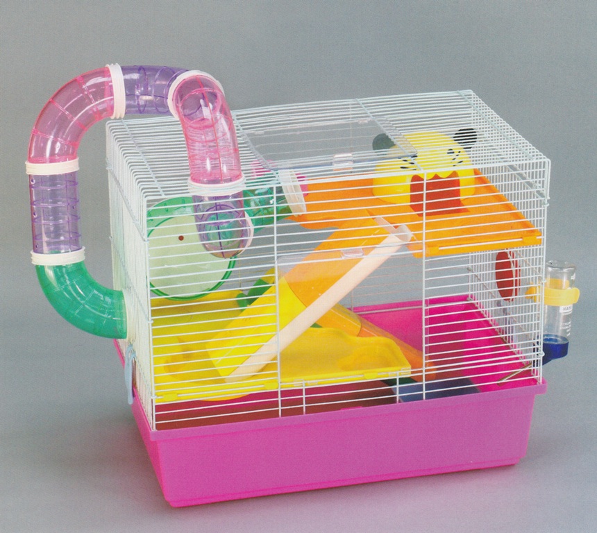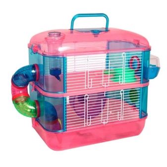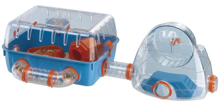 - Plastic. Plastic quality is important for these cells: it must be durable and safe, and the cell itself must not have sharp details. Plastic houses often have more than one level and are equipped with tunnels, tubes, and other attributes that fully satisfy the locomotor activity of the animal. Usually they are used for pets of small size, which freely move through the winding tunnels. Large-sized hamsters can simply get stuck when walking through the tubes. Transparent plastic cage allows you to admire the games and entertainment of a hamster.