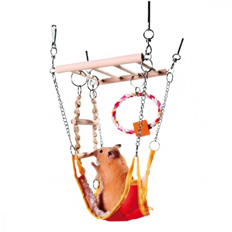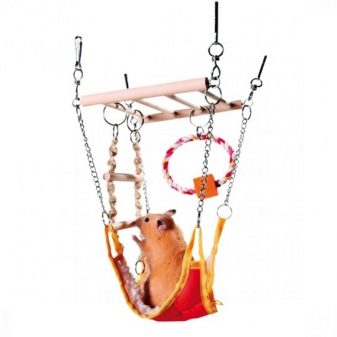 - Attributespromoting pet activity: climbing ladders, a hammock where a hamster can rest, mazes, tubes and tunnels that the hamster will explore with interest, toys and various wooden objects in the form of dumbbells, vegetables or fruits, cubes with which the hamster will gladly will play, hide them or scatter them.