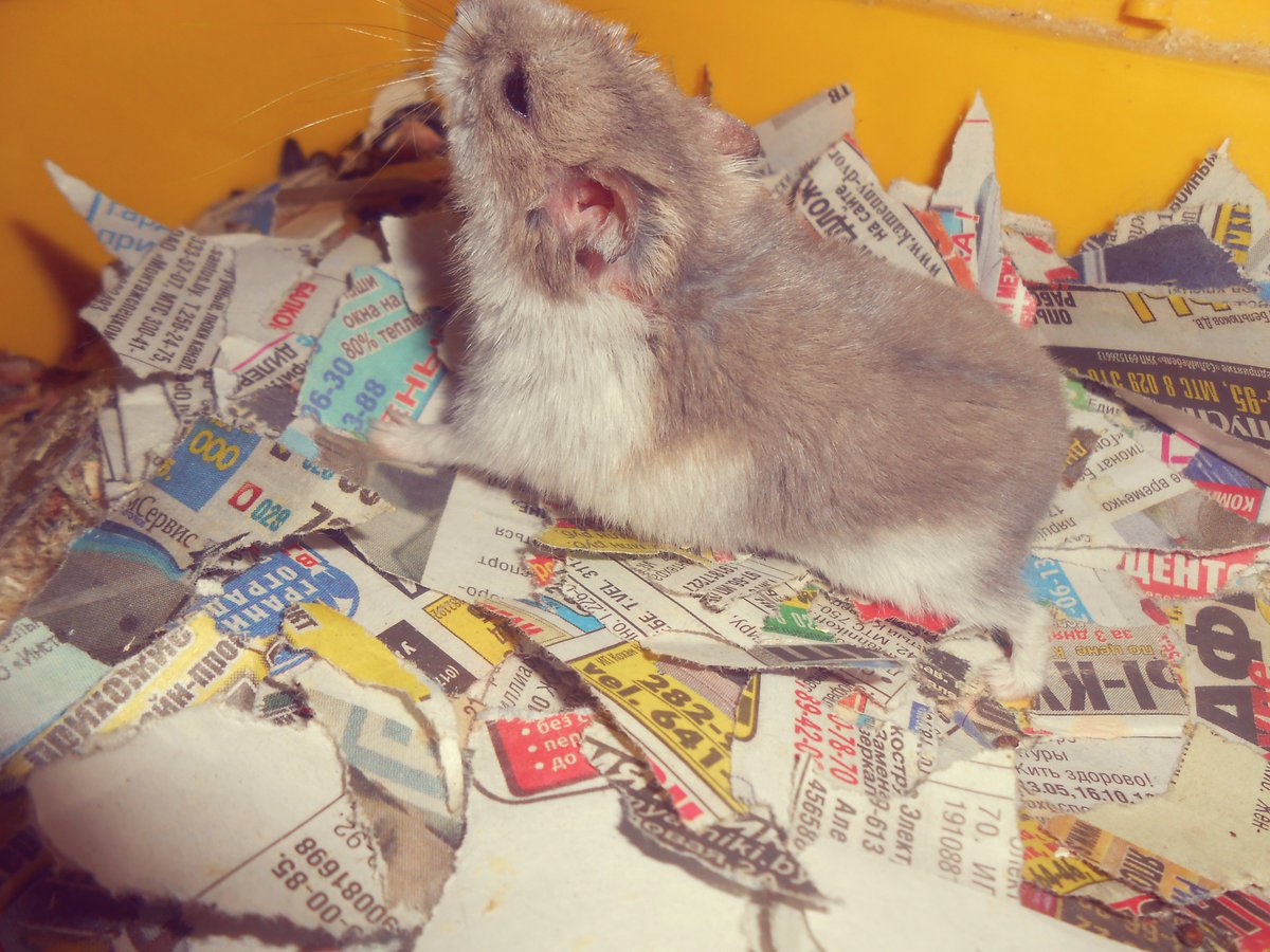 Plain newspaper. This type of litter has remained since the time when there was simply no other filler. But the newspaper harms the hamster's health and not only with ink.Absorbency of newspapers is extremely low, and they do not absorb smells at all, therefore they do not meet the requirements of hygiene. In addition, they will have to change every day. This type of litter is not recommended.