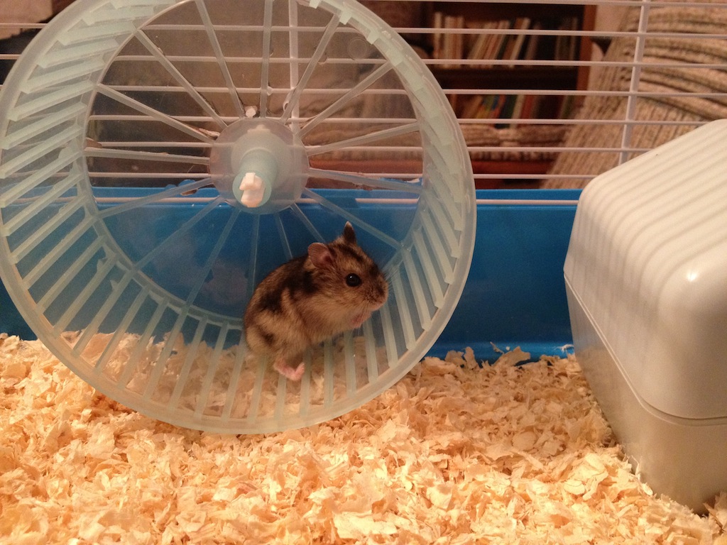 - Running wheel. Hamsters living in the wild, are able to cover up to 10 km per day, looking for food and material for the nest. Therefore, at home they need to create a maximum of conditions to maintain physical fitness. For this reason, a running wheel is a necessary attribute in a cage. It must meet safety requirements - its inner surface must be non-slip, solid with small transverse protrusions, and not from individual crossbars. Mesh wheels can be used if the mesh consists of the smallest sections. A wooden wheel would also be a good option.
