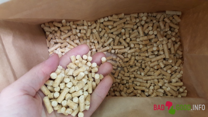 - Cellulose filler. This type of filler can be used even for animals with allergies. The degree of absorption of moisture and odors it is the same as that of sawdust. But its granules are smaller and lighter than those of extruded sawdust. Therefore, it can be used as a litter, even for small pets.