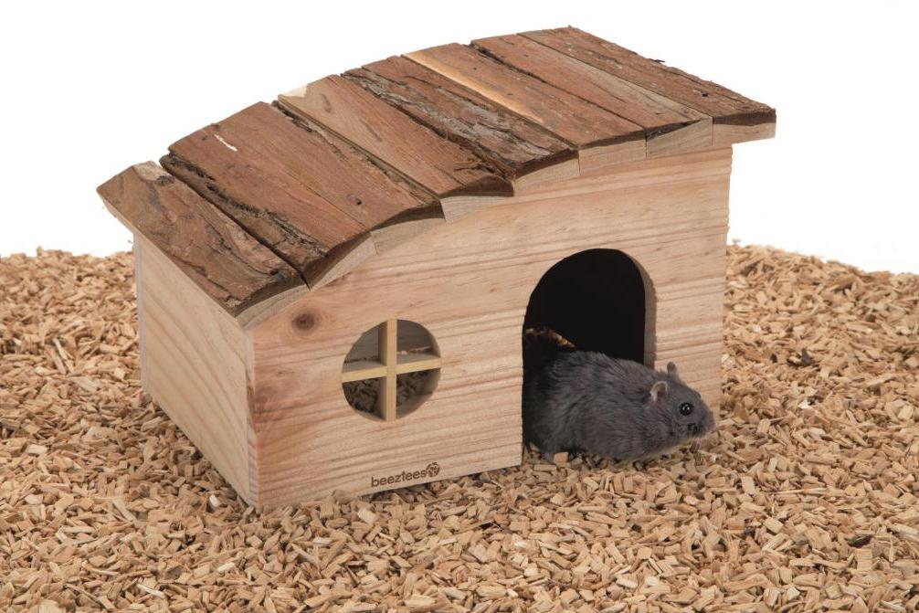 - House It is necessary for animals to sleep and rest, for storing feed supplies and for arranging mink. All hamsters love to sleep and spend time in cozy compact rooms where it is easy for them to warm up and control their body temperature. Houses can be both plastic and wooden. The main requirement for the design is a securely fixed roof, the absence of sharp protrusions, environmental friendliness of the material. All openings (doors, windows) must be of such a size that a hamster can easily pass through them.