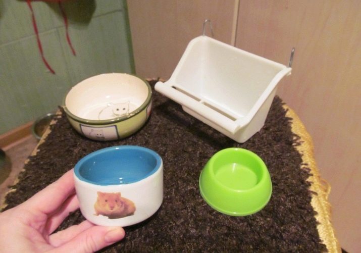 It is better to use a ceramic bowl, rather than a plastic one, because it is light and the hamster can easily knock it over. It is recommended to periodically scatter food on the floor in order to maintain the hamster's natural instinct in searching for food, its collection and storage.