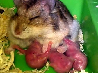 The animal becomes very aggressive, and also searches for more secluded places. At the female the appetite increases, and also the thirst torments. Pregnancy lasts from 18 to 21 days. The number of babies does not exceed 6 pieces. However, in rare cases there may be more.