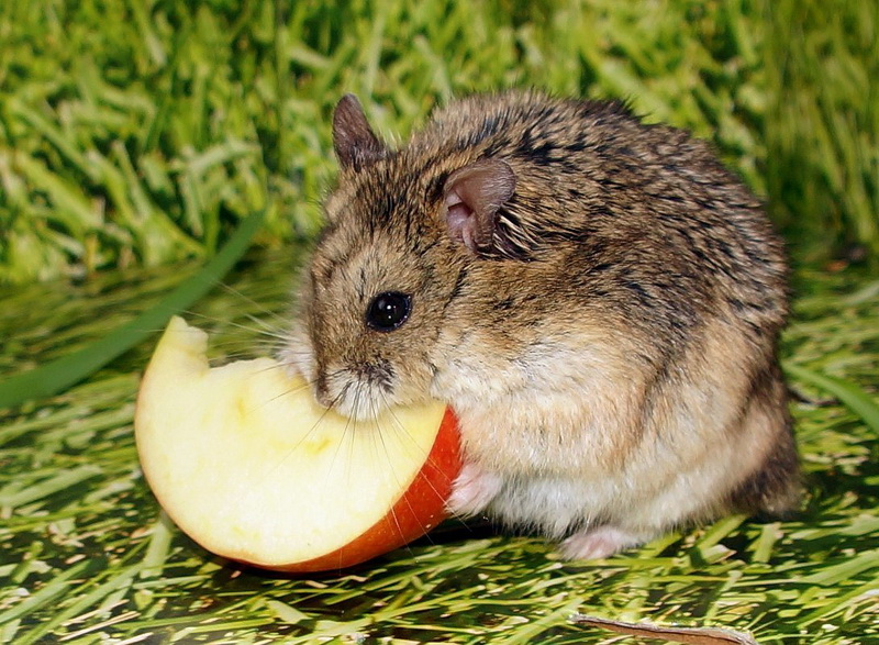 Berries or grass most often get into their diet, but if they find it, then it can be any cereals that are in the area. In addition, they can eat insects. Very often, to find food, they run several kilometers a day. If the Dzungar hamster runs along an unprotected plain, then any predator can catch it. But most often they are hiding or camouflaged, as they have a color that blends with the terrain. Therefore, predators need to try hard to catch them.