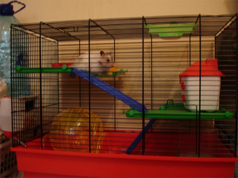 - The material of manufacture. It can be metal or plastic. Plastic cells are usually immediately equipped with all necessary equipment, including a wheel, tunnels and other attributes. Of course, this option with a full package is not cheap. For this reason, a metal cage will become a more affordable and equally good choice.