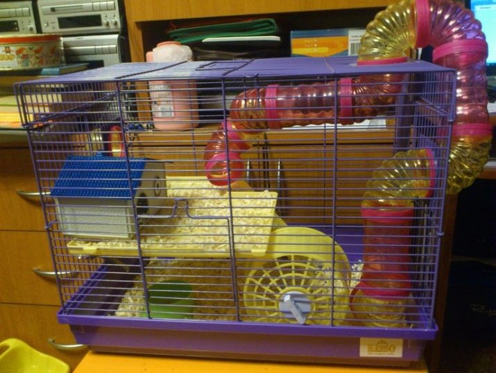 - Dimensions. An adult should be in a cage with dimensions of at least 50x50 or 30x50 cm - this depends on the breed of the pet. A small cage will adversely affect the health of the hamster. Also, do not put your pet in a cage that is designed for a parrot or guinea pig. It should be equipped specifically for hamsters, have the appropriate size and quality.